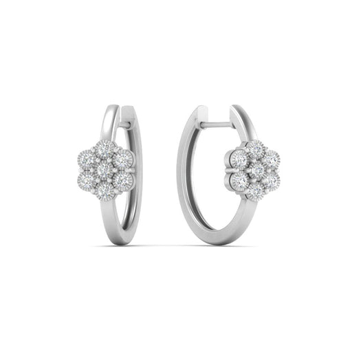 View full detailsThe Flower Small 2 Tone Hoop Huggie Earrings from Fascinating Diamonds features floral diamond clusters set in prong setting on a sleek gold hoop. ...