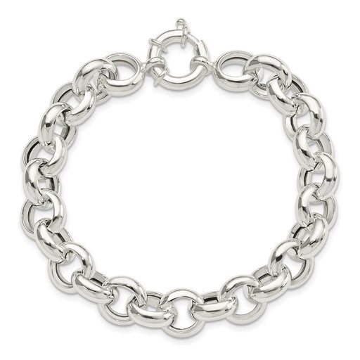 View full detailsResembling the cable chain with its open links alternating in opposite directions, this 11.5mm width hollow rolo chain features broad circular ring...