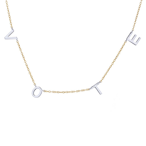 View full detailsThe 14K Gold and Sterling Silver Vote Necklace is a beautiful and meaningful piece of jewelry that encourages civic engagement and celebrates democ...