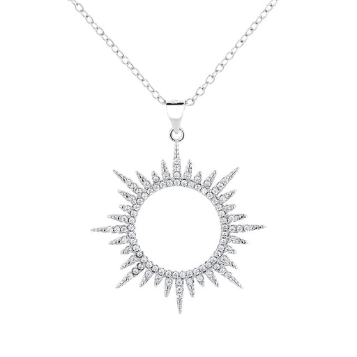 View full detailsThe 14k Gold and Sterling Silver Sunburst Pendant Necklace with crystals is a beautiful and eye-catching piece of jewelry that is perfect for addin...
