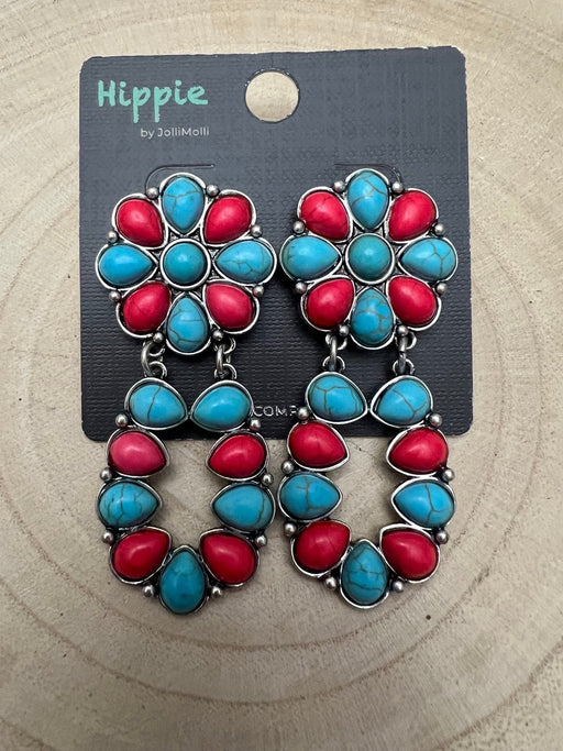 View full detailsFaux Turquoise and Coral Cluster Post Earrings These Faux Turquoise and Coral Cluster Post Earrings capture the spirit of the West with their vibra...