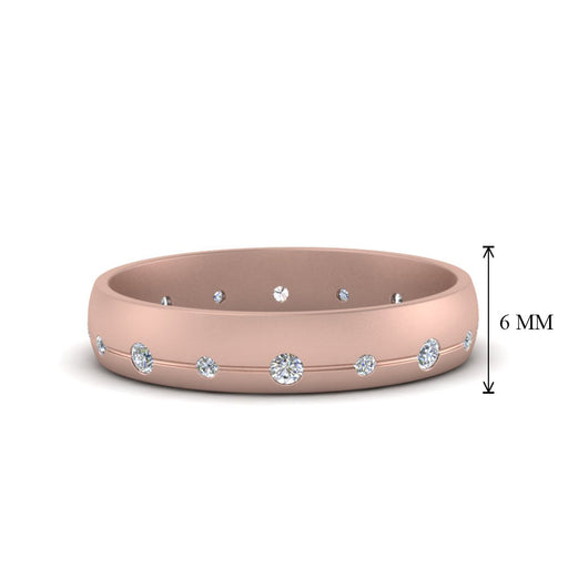 View full detailsThe Flush Set Diamond Wedding Band from Fascinating Diamonds features a smooth metal finish with large and tiny round cut diamonds securely plac...