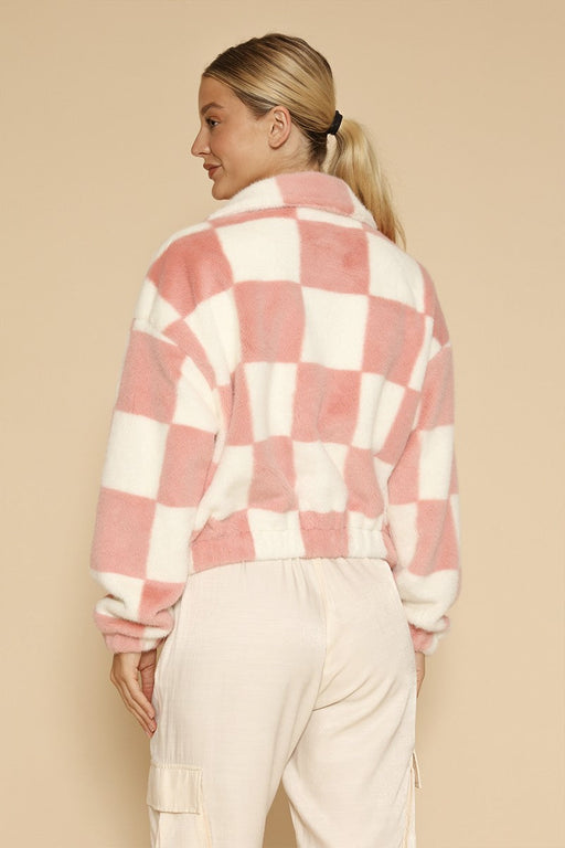 -Fuzzy checker jacket, fully lined-Zip front closure-Front pockets *Model is 5'7" wearing a size small