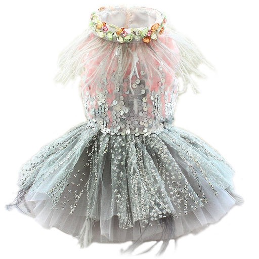 View full detailsAdd a touch of luxury to your pet’s wardrobe with this glamorous sequin feather dress. Perfect for special events like weddings, parties, and eleg...