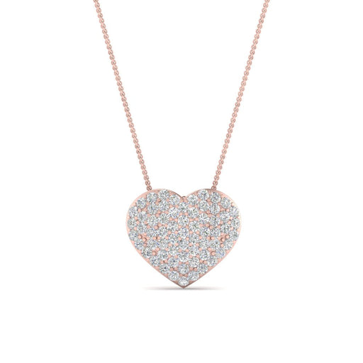 The Heart Cluster Diamond Pendant from Fascinating Diamonds features a field of pave-set round-cut diamonds closely nestled together to form a lumi...