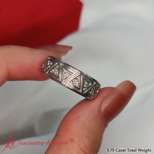 View full detailsThis Inverse Triangle Band from Fascinating Diamonds showcases charming elegance, with dazzling round-cut stones arranged artistically in a clas...