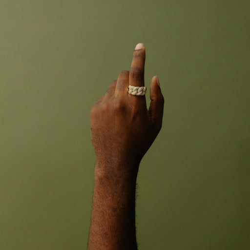 View full detailsAvailable Sizes: 5 - 12 Stone Type: Cubic Zirconia Ring Width: 11mm Metal Selection: Sterling Silver 14k Gold over Silver