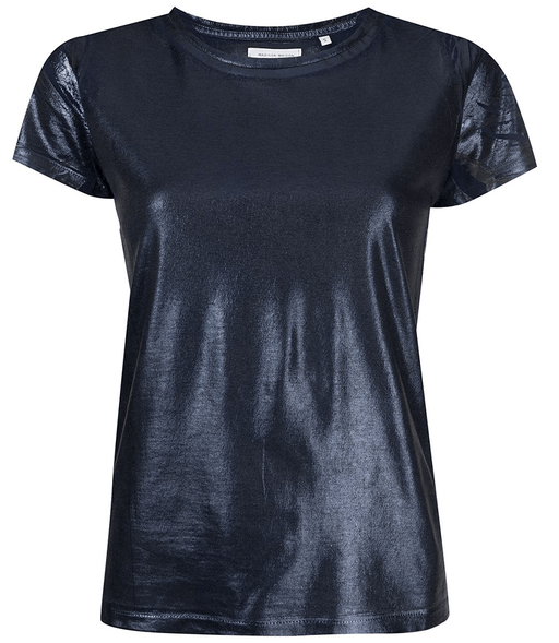 View full detailsDescription: The Madison Maison Navy/Navy Lamina T Shirt is a navy t-shirt with navy foil overlay foiling. *All pieces are handmade, foiling is uni...