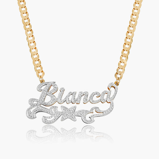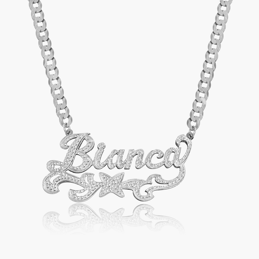 View full detailsOur popular Double Plated Star Name Necklace boasts a chic and elegant design, handcrafted to perfection. The model showcases the necklace with a ...