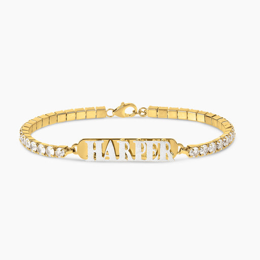 View full detailsCustomizable with Letters, Numbers & Roman Numerals. Chain Type: TennisChain Length: 7" + 1" Extender Closure: Lobster clasp Stone Type: Cubic ...
