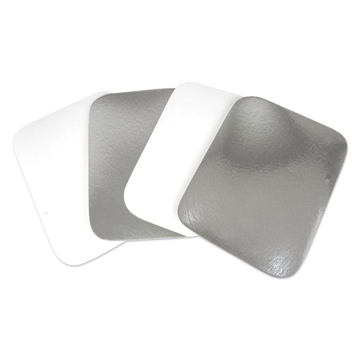 Used for food pans. Paper board lids with aluminum bottom. Ideal for takeaways.