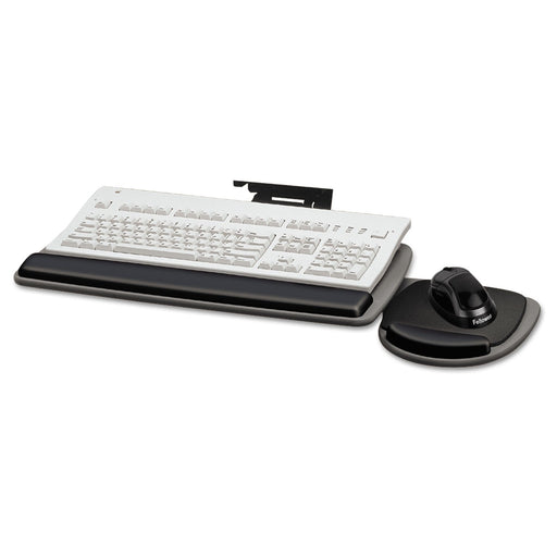View full detailsEnjoy custom comfort and easy space management with the fully adjustable Fellowes® Keyboard Tray! Simply grasp and rotate keyboard tray to your pre...