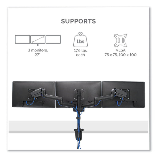View full detailsThree fully independent adjustable monitor arms with innovative gas spring technology allows for effortless monitor adjustment. Intuitive cord mana...