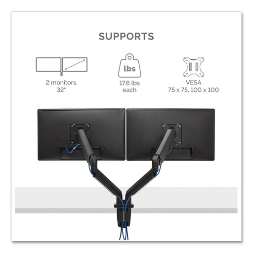 View full detailsTwo fully independent adjustable monitor arms with innovative gas spring technology allows for effortless monitor adjustment. Intuitive cord manage...