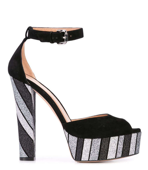 View full detailsDescription: The Madison Maison Festa Black Suede Venezia Platform Heel is a 6 inch peep-toe heel, perfect for a night out. The Handmade Leather he...