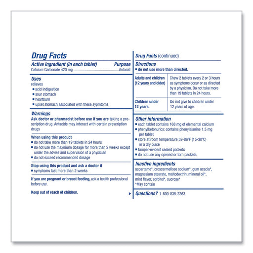 View full detailsOver the counter antacid medication for first aid kits and cabinets and can be used as a standard supply as a standalone. Convenient dispenser.