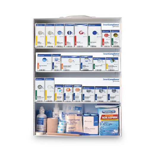 Stand alone packaging for larger size first aid kits and cabinets. Wound dressing fabric bandages.