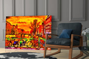 Bicycle and City Glass Wall Art