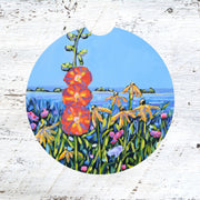 Car Coaster: Hollyhocks - Mackinac Island . Artist Christi Dreese
