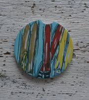 Ceramic coasters measure 2.75" and fit standard size cup holders. Easy to pop out and wipe clean.