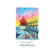 Dish Towel - "Grand Haven Sunset Lighthouse"