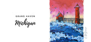 Drinkware -Pink Sky at Night Grand Haven Lighthouse Michigan.