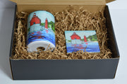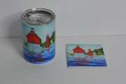 Grand Haven Lighthouse Lake View Gift Set: Stainless Steel, double walled 10oz tumbler with matching coaster.