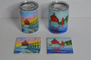 Grand Haven Lighthouse Sunset & Lake View Gift Set: Stainless Steel, double walled 10oz tumblers with matching coasters.