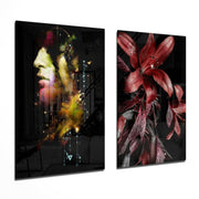 Man and Flower 2 Pieces Combine Glass Wall Art