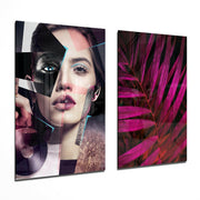 Patchwork Women 2 Pieces Combine Glass Wall Art