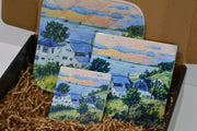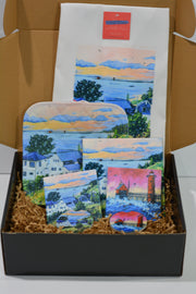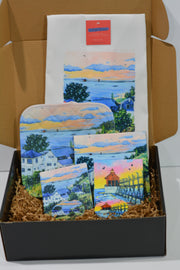 Views from Stickney Ridge Select Gift Set: One dish towel, one coaster, one potholder, one 6"x6" trivet and two car coasters.