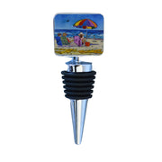 Wine Bottle Stopper: Beachgoers, Beach Lake