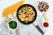 The MASTERPAN Fry Pan & Skillet (8",9.5",11") is a must have for any kitchen and is crafted from cast aluminum with a riveted stainless steel handle and removeable silicone handle cover, and then finished with a premium ceramic reinforced non-stick coating. It has deep 2β sides that reduces easy spillage and splatter when frying, making it the ideal pan for stir frys, crepes, pancakes, eggs, quesadillas, and much more. The sleek style and ultra durability fulfills all your cooking desires. Part of our Chefβs Series, the pan boasts a smooth, hard surface with a streamlined noble granite look, and stainless steel handle making it an ideal addition to any kitchen and your cooking needs. Cookware that is guaranteed to perform as amazing as it looks! Riveted handle provides added support and removable, silicone handle cover is versatile for using in and out of the oven.