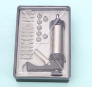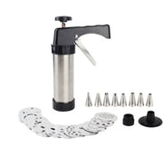 Accessories: 13 stainless steel cookie press molds and 8 pastry piping nozzles