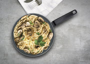 The MASTERPAN 11" (28cm) Fry Pan & Skillet is a must have for any kitchen and is crafted from cast aluminum with a bakelite handle, and then finished with a premium ceramic non-stick coating. It has deep 2” sides that reduces easy spillage and splatter when frying, making it the ideal pan for stir frys, crepes, pancakes, eggs, quesadillas, and much more. The sleek style and ultra durability fulfills all your cooking desires. Part of our Classico Series, the pan boasts a streamlined look and bakelite handle making it an ideal addition to any kitchen and your cooking needs. Cookware that is guaranteed to perform as amazing as it looks!