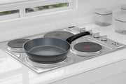 The MASTERPAN 9.5" (24cm) Fry Pan & Skillet is a must have for any kitchen and is crafted from cast aluminum with a bakelite handle, and then finished with a premium ceramic non-stick coating. It has deep 1.75” sides that reduces easy spillage and splatter when frying, making it the ideal pan for stir frys, crepes, pancakes, eggs, quesadillas, and much more. The sleek style and ultra durability fulfills all your cooking desires. Part of our Classico Series, the pan boasts a streamlined look and bakelite handle making it an ideal addition to any kitchen and your cooking needs. Cookware that is guaranteed to perform as amazing as it looks!