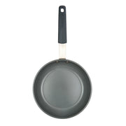 The MASTERPAN 9.5" (24cm) Fry Pan & Skillet is a must have for any kitchen and is crafted from cast aluminum with a riveted stainless steel handle and removeable silicone handle cover, and then finished with a premium ceramic non-stick coating. It has deep 2” sides that reduces easy spillage and splatter when frying, making it the ideal pan for stir frys, crepes, pancakes, eggs, quesadillas, and much more. The sleek style and ultra durability fulfills all your cooking desires. Part of our Chef’s Series, the pan boasts a smooth, hard surface with a streamlined look making it an ideal addition to any kitchen and your cooking needs. Riveted handle provides added support and comfort while the removable silicone handle cover allows for versatility while using in and out of the oven. Cookware that is guaranteed to perform as amazing as it looks and make you feel like a chef!