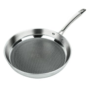 The MASTERPAN Chef’s Series 9” Fry Pan is built to benefit your relationship with food. Its ingenious 3-ply construction (stainless/aluminum/stainless) lasts significantly longer than your usual non-stick cookware, and can be used worry-free on any heat source, induction included, with mouthwatering results. This superior combination cooking surface boasts intelligent “snowflake technology” that rises above its superior non-stick surface—it is specially designed to balance heat distribution flawlessly throughout the entire pan, so you can sear and brown foods without the hassle of it sticking to the surface! The ILAG non-stick Swiss technology premium coating is PFOA, lead, cadmium, and heavy metal free, and scratch-resistant, so go ahead and use those metal utensils. The pan also features an ergonomically designed handle, and is dishwasher safe.