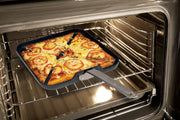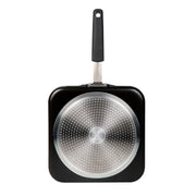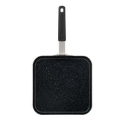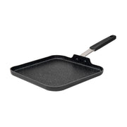 The MASTERPAN 11" (28cm) Griddle Pancake Pan is a must have for any kitchen and is crafted from cast aluminum with a riveted stainless steel handle and removeable silicone handle cover, and then finished with a premium ceramic reinforced non-stick coating. It has a perfect flat surface and low walls for easy access but still prevent any spillage when frying, making it the ideal pan for crepes, pancakes, tortillas, rotis, eggs, quesadillas, and much more. The sleek style and ultra durability fulfills all your cooking desires. Part of our Chef’s Series, the pan boasts a smooth, hard surface with a streamlined noble granite look, and stainless steel handle making it an ideal addition to any kitchen and your cooking needs. Cookware that is guaranteed to perform as amazing as it looks! Riveted handle provides added support and removable, silicone handle cover is versatile for using in and out of the oven.