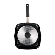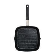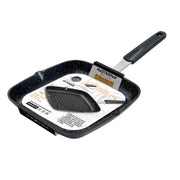 The MASTERPAN 10" (25cm) Grill Pan is a must have for any kitchen and is crafted from cast aluminum with a riveted stainless steel handle and removeable silicone handle cover, and then finished with a premium ceramic reinforced non-stick coating. It has 12 perfectly sized and spaced grill ribs with a deep 1.5” sides that reduces easy spillage and splatter when grilling, making it the ideal pan for all your grilling needs. Part of our Chef’s Series, the pan boasts a smooth, hard surface with a streamlined noble granite look, and stainless steel handle making it an ideal addition to any kitchen and your cooking needs. Cookware that is guaranteed to perform as amazing as it looks! Riveted handle provides added support and removable, silicone handle cover is versatile for using in and out of the oven.