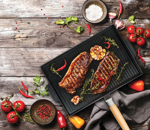 View full detailsThe MASTERPAN 10”x14” Double Sided Grill and Griddle is exceptional for all cooking hobs except induction. Its durable cast aluminum material is b...