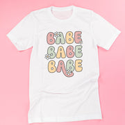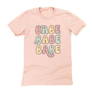 They run slightly larger than typical women's shirts and slightly smaller than typical men's shirts.