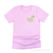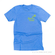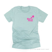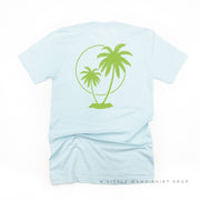 BEACH PLEASE POCKET DESIGN FRONT / 2 PALM TREES BACK - Unisex Tee