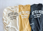 Bit Of a Mess (But Doing My Best / Mama on Sleeve) - Neutrals - LMSS® Exclusive - Long Sleeve Comfort Colors Tee