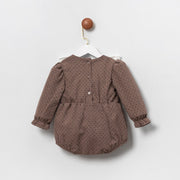 Step into fall with our delightful brown romper, designed to keep your little girl both stylish and cozy! This lovely piece features a beautiful lace detail at the front, adding a touch of elegance, while a sweet brown bow completes the look.