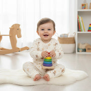 Dress your little one in comfort and charm with our 2-Piece Long Sleeve Top and Pant Set, featuring an adorable teddy with bicycle print. Made from 100% soft, breathable cotton, this set is gentle on delicate skin, ensuring all-day coziness. The long-sleeve top provides warmth and flexibility, while the matching pants offer a snug yet comfortable fit with an elastic waistband for easy wear. Perfect for playtime, nap time, or outings, this cute and practical set combines style, durability, and ultimate comfort. A must-have addition to any baby’s wardrobe!