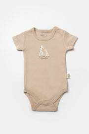 Elevate your baby’s wardrobe with our stylish brown short sleeve bodysuit featuring a fun graphic print. Crafted from soft, breathable fabric, this bodysuit ensures all-day comfort while adding a touch of personality to your little one’s outfit. The snap closure makes diaper changes a breeze, and the playful design is perfect for both everyday wear and special occasions. Dress your baby in this adorable bodysuit and let their personality shine!