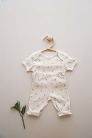 Add a touch of sweetness to your little one’s wardrobe with our adorable 2-Piece Pear Patterned Set! This charming ensemble features a short sleeve bodysuit and matching pants, both made from soft, breathable fabric that ensures all-day comfort for your baby.