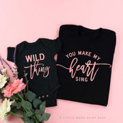 Wild Thing - You Make My Heart Sing | Black Shirts w/ Pink Design | Set of 2 Shirts