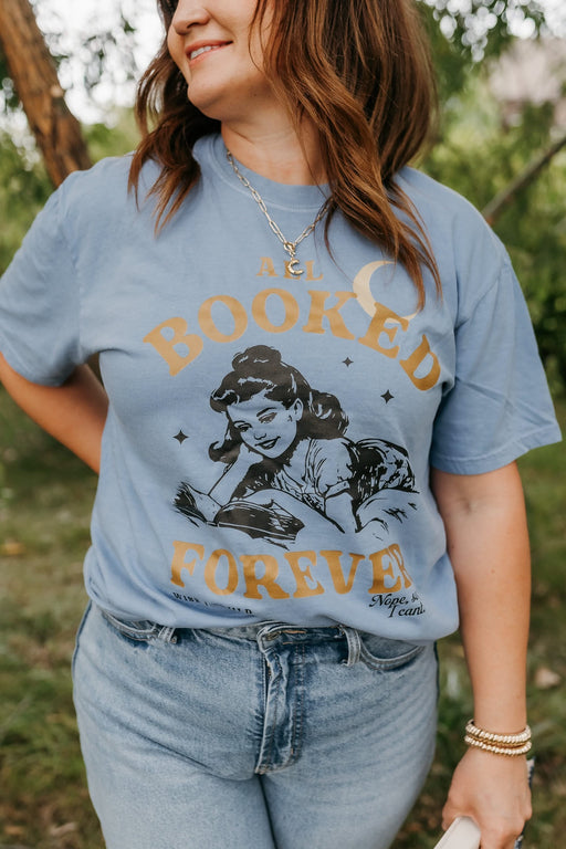 The All Booked Forever - Comfort Colors Tee is the perfect staple for readers who would rather spend their nights with a good story than anywh...